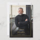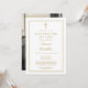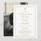 Une invitation de funérailles élégante et moderne avec une bordure dorée pour une célébration chrétienne de la vie avec une photo au verso. Conçue par Thisisnotme©