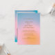 Cette invitation d'anniversaire moderne présente un dégradé pastel doux qui mélange rose, lavande et bleu ciel pour un look frais et élégant. La typographie claire et la mise en page aérée en font un choix idéal pour les célébrations de milestones avec une touche stylée et contemporaine. Parfait pour une fête d'anniversaire 21 ans chic, une célébration de cocktails ou une réunion intime. Personnalisez tout le texte pour qu'il corresponde aux détails de votre événement.