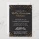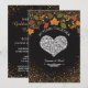 Cartes d'invitation pour une fête d'anniversaire de 50 ans de mariage avec des diamants et de l'or élégants - Des bordures de paillettes dorées ornent le haut et le bas. Un cœur en faux diamants est centré. Le dessus est orné d'un design de couronne de feuilles d'automne et de baies dans des couleurs automnales classiques. Porte l'inscription "50 ans ensemble" au-dessus du cœur en lettrage noir élégant et incurvé. Les noms des conjoints en dessous en joli script avec une bordure en rouleau. Fond noir. Le verso présente un fond noir et pailleté doré assorti avec les détails de la fête d'anniversaire de mariage personnalisés en or. Remarque : Toutes les images sont imprimées. Pas de véritables pierres précieuses ou paillettes. Utilisez le bouton Personnaliser pour modifier quoi que ce