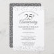Avec des confettis délicats en forme de cœurs d'amour argentés. Personnalisez avec vos informations spéciales pour vos vingt-cinq ans de mariage en typographie chic sur une carte argent métallisé. Conçu par Thisisnotme©