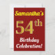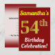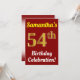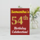 Cette invitation de fête d'anniversaire présente un message comme "Célébration du 54e anniversaire de Samantha !", où le nom peut être personnalisé, et où le nombre "54e" a une apparence dorée factice. Il comporte également un fond de couleur rouge. Les détails de l'événement au dos peuvent être personnalisés. Il pourrait être utilisé pour inviter des gens à la célébration ou à la fête d'anniversaire de quelqu'un à l'occasion de son cinquante-quatrième anniversaire. [~Z0000120]