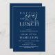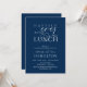 Belle carte d'invitation de déjeuner d'après-mariage à l'écriture moderne romantique bleu marine (Déjeuner heureux à tout jamais). C'est parfait pour votre célébration de mariage après et en fuite. Ajoutez vos détails avec une couleur, une police / lettrage assortis. #TeeshaDerrick