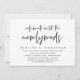 Carte d'invitation de mariage thème écriture moderne (Célébrez avec les jeunes mariés). Elle est parfaite pour votre dîner de mariage intime décontracté au bord du lac, danser et faire la fête.