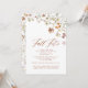 Une invitation de célébration « Fête Bohème des Fleurs Sauvages d'Automne » fantaisiste, parfaite pour une réunion automnale. Cette invitation présente un mélange de charme bohème et d'éléments automnaux rustiques, avec des fleurs sauvages délicates et des couleurs saisonnières riches comme les oranges chaudes, les rouges profonds et les bruns doux. Idéal pour une célébration cosy et inspirée de la nature, elle donne le ton pour un événement festif et élégant avec une ambiance décontractée et charmante.