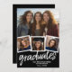 Si vous avez une fête de fin d'études en groupe cette année — ou jumeaux ou triplés, cette faire-part et invitation a 4 photos sur le devant pour couvrir tous les diplômés. Vous planifiez une fête de remise de diplômes de groupe ? Voici une invitation amusante avec 4 photos pour célébrer votre grand moment ensemble. Ajoutez une photo de groupe et 3 photos individuelles.