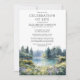 Cette élégante invitation de célébration de vie, avec une scène de lac floral en forêt, peut être personnalisée avec les détails du service et une photo du défunt au verso. Conçu par Thisisnotme©
