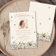 Il s'agit d'une carte d'invitation funéraire moderne élégante et fantaisiste pour célébrer la vie de votre être cher. Le design comprend une belle police calligraphie et de beaux fleurs sauvages en rose pastel, violet, bleu, jaunes et rouille ou en terre cuite et aussi des papillons délicats floutants. Cette célébration de l'invitation à la vie peut facilement être personnalisée avec votre propre photo pour créer un hommage spécial pour les funérailles de votre être cher, mémorial ou célébration de la vie en utilisant le modèle fourni. Veuillez contacter le concepteur pour toute question concernant ce design ou pour tout produit correspondant.