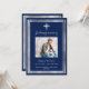 Un enterrement/célébration simple, élégant, moderne et élégant de l'invitation à vivre. Un arrière - plan bleu marine décoré d'une fausse croix argentée et de faux cadres argentés. Personnalisez et ajoutez un nom photo et des détails. Texte blanc.