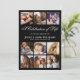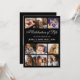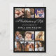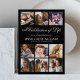 Élégantes invitations de mémorial funéraire avec un fond noir stylé, 10 photos de votre proche disparu et un modèle de célébration de la vie.