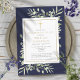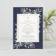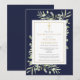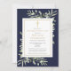 Une élégante invitation de célébration de vie personnalisée avec feuillage botanique aquarelle sur fond bleu marine. Conçu par Thisisnotme©