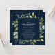 Célébration élégante d'une invitation à la vie carré comprend un cadre botanique de baies blanches et de fleurs et feuillage sur un arrière - plan bleu foncé. Le nom de la personne décédée est écrit dans un texte traditionnel. Tout le texte peut être facilement édité pour créer un souvenir personnel.