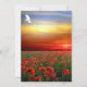 Invitation commémorative avec un beau champ de pavot, un coucher de soleil élégant, une seule colombe qui prend l'avion, et une célébration de la vie modèle qui est facile à personnaliser.