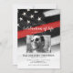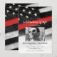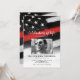 Célébrez la vie héroïque d'un pompier décédé avec notre invitation de mémorial de funérailles de pompier unique. Comportant le drapeau des États-Unis et la ligne rouge fine iconique symbolisant le département de pompiers, cette invitation comprend également un espace pour mettre en valeur une photo de votre proche. Le design est complété par un magnifique modèle de célébration de la vie facilement personnalisable, en faisant un souvenir mémorable du courage, du sacrifice et de l'esprit patriotique de votre pompier bien-aimé.