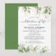 L'invitation personnalisée de mémorial funéraire est un moyen idéal d'honorer le défunt et de célébrer sa vie de manière respectueuse et digne. Avec des feuilles de eucalyptus botaniques vertes à l'aquarelle élégantes, des accents floraux dorés et un modèle de célébration de la vie facile à personnaliser.
