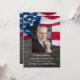 Invitation à la célébration de la vie en mémoire du drapeau américain de l'USA. Cette invitation de célébration de la vie patriotique présente un drapeau des États-Unis d'Amérique sur un fond en bois sombre. Personnalisez cette invitation de célébration de la vie du drapeau américain avec la photo, le nom et les dates de vos proches, le lieu de l'événement. Cette invitation de service funèbre de la photo du drapeau américain sera un souvenir précieux. Parfait pour des funérailles militaires, un service commémoratif de vétéran ou une célébration de la vie militaire. En souvenir du mémorial militaire du drapeau américain. COPYRIGHT © 2020 Judy Burrows, Black Dog Art - Tous droits réservés. Invitation à la célébration de la vie militaire du vétéran du drapeau américain