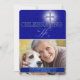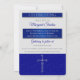 Célébrer la vie de ... Une croix chrétienne pour le 'T' dans célébrer offre un thème religieux à cette invitation recto-verso. La photo, le nom et les années de la personne aimée sur le devant et les détails du rassemblement au dos, le tout dans une belle couleur bleue avec des accents argentés. Recherchez la Collection de Mémorial de Croix Chrétienne Bleue dans notre magasin pour des articles assortis afin de compléter l'apparence de votre Célébration de la Vie et apporter une touche élégante.