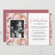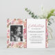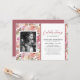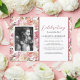 Invitation au souvenir funéraire avec une aquarelle rose rustique sur fond floral, une photo de la personne décédée, et une célébration de la vie modèle facile à personnaliser.