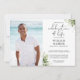 Élégante invitation de photo de remémoration de célébration de vie funéraire moderne personnalisée avec verdure de jardin. Conçue par Thisisnotme©
