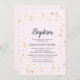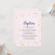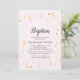 Cette cérémonie d'or sur l'invitation au baptême rose est parfaite pour un baptême élégant, baptême, baptême ou baptême bébé pour une fille. Le design moderne présente des décorations en faux or sur un arrière - plan rose clair avec une simple calligraphie gris foncé.