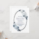 Une invitation à une célébration de mariage intime élégante avec des fleurs bleues et blanches.