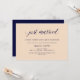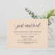 Ces invitations de fête après mariage élégantes présentent un fond rose blush et une calligraphie bleu marine élégante pour un look moderne minimaliste.