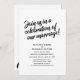 Invitez vos invités à votre célébration de mariage à l'aide de cette simple carte d'invitation noire sur fond blanc. Dans le design que j'ai utilisé, une police de caractères cursive moderne, audacieuse et décontractée crée une superposition de typographie graphique qui dit "Rejoignez-nous pour célébrer notre mariage !". La même police a été utilisée pour écrire un "amour" simple et audacieux qui a été placé au dos. Remplissez les espaces vides du modèle avec vos détails pour personnaliser le design. Toutes les couches ont été laissées déverrouillées pour que vous puissiez cliquer pour personnaliser davantage et repositionner le texte ou même changer les tailles ou les polices. La couleur de fond a été laissée blanche, mais elle est également modifiable ; changez-la pour l'une de vos couleurs de mariage si vous préférez. //