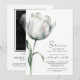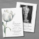 Célébrez la vie de votre proche avec ce faire-part de service funèbre floral élégant et moderne. Ce design présente un fond blanc épuré sur le recto et le verso, orné d'une simple tige de tulipe blanche, ajoutant une touche de grâce et de sophistication. Les polices noires combinent la typographie script et serif, offrant une apparence raffinée et de bon goût. Parfait pour un service funèbre, un enterrement ou une réunion de souvenir, ce faire-part comprend un espace pour le nom de votre proche, les dates, et une section pour partager des souvenirs ou une nécrologie au verso. Vous pouvez personnaliser tout le texte avec vos informations et même ajuster la couleur de fond si vous le souhaitez. De plus, le design permet d'ajouter une photo au verso, qui peut être réglée sur un filtre noir et blanc pour une touche supplémentaire spéciale, bien que cela puisse être modifié dans les paramètres de l'éditeur complet. Faire-part de funérailles de célébration de vie de script mémorial. Disponible en tant que faire-part imprimé ou en tant qu'invitation numérique téléchargeable que vous pouvez envoyer