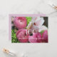 Ici, sur cette belle invitation, un magnifique bouquet de fleurs roses, est la toile de fond d'une célébration du 100e anniversaire très spécial de quelqu'un ! Vous pouvez customiser tout cela, y compris le texte, l'âge, le style de police, la couleur du verso de l'invitation...et bien sûr, remplissez vos propres détails, et choisissez la taille de l'invitation que vous voulez.