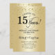 Design élégant avec faux feuilletis or. Caractères en script noir et diamants en confettis. À votre santé pour 15 Ans ! Peut être personnalisé pour afficher n'importe quelle année de mariage. Envoyez-moi un message si vous avez besoin d'une personnalisation supplémentaire.