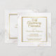 Invitez la famille et les amis à une célébration spéciale du 50e anniversaire de mariage de noces d'or du couple avec cette invitation élégante. Conçue avec un cadre doré et des reflets dorés sur fond blanc au recto et au verso. Outre les détails de l'événement, le verso comprend les noms des conjoints avec leur date de mariage et la date de leur 50e anniversaire de mariage. Cette carte est facile à personnaliser. Il suffit d'insérer votre texte dans notre modèle facile, en remplaçant le texte d'exemple.