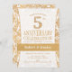 Invitation pour une fête de 5ème anniversaire de mariage en blanc et or.