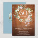 Avec une délicate guirlande florale à l'aquarelle sur un fond en bois rustique vintage, cette invitation chic et botanique pour le 60e anniversaire de mariage peut être personnalisée avec vos informations spéciales de noces de diamant. Le verso présente une guirlande florale assortie encadrant vos dates d'anniversaire en texte blanc élégant sur un fond bleu diamant. Conçu par Thisisnotme©