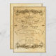 Faire-part et invitations recto-verso pour la célébration d'un 90e anniversaire. Il existe une gamme complète de produits pouvant être coordonnés avec cette collection. Voici une belle invitation de fête d'anniversaire, formelle et élégante, de style calligraphique pour une célébration spéciale qui correspond à tous les éléments de la série de faire-part de mariage du même nom. Vous pouvez personnaliser l'un des produits coordonnés et ils correspondront. Utilisant une nouvelle œuvre d'art pour reproduire l'apparence d'un faire-part de mariage de style vintage. Un parchemin "vieilli" avec une teinture de thé forme l'arrière-plan d'une belle bannière incurvée marron chocolat sépia avec les mots incurvés de style typographique du 19e siècle "Votre présence est demandée à" et dans une autre police de style cirque "Une douche pour un couple" et une œuvre d'art textuelle antique "et". Il y a une bordure supérieure et inférieure gravée avec des bannières baroques, des volutes florales, des fleurs, des feuilles et une image de coquillage. À l'intérieur d'une bordure de séparateur en forme de courbe supérieure et inférieure en volutes est votre texte d'invitation à la fête. Le cadre ornemental en volutes calligraphiques est un élément léger et aérien. Au verso se trouve votre monogramme ou initiale avec le même fond taché de thé et un cadre de volutes calligraph