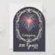 Marquez un jalon unique avec cette élégante invitation de 5" x 7" présentant un fond bleu marine profond, des feux d'artifice radieux et un ornement en ivoire orné dans une disposition arquée raffinée. Le recto annonce l'occasion avec une écriture élégante, tandis que le verso coordonné offre un design de feux d'artifice pastel doux avec un espace pour les détails de l'événement et les informations de réponse, y compris une option de code QR. Belle pour les réceptions d'anniversaire, les célébrations civiques, les dîners de gala, les commémorations historiques et les événements élégants de 250 ans, ce design allie charme classique et look festif et soigné.