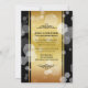 Faites du 50e anniversaire de mariage une célébration inoubliable avec ces invitations ! Lettres élégantes noires et blanches avec confettis hexagonaux sur fond de papier doré et noir ajoutent une touche mémorable pour cette occasion spéciale et ce jalon extraordinaire. Personnalisez avec les noms des conjoints, le lieu, l'adresse, la date et l'heure.