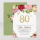 Carton d'invitation floral pailleté aquarelle pour les 80 ans élégant