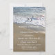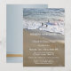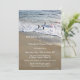 Une invitation élégante d'anniversaire de mariage avec des vagues qui coulent sur le sable de la plage.