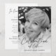 Il s'agit d'une célébration moderne, élégante et minimale de la vie invitation à honorer la vie de votre être cher. Le design utilise une simple photo en noir et blanc et un élégant script de calligraphie. Cette invitation peut être facilement personnalisée avec votre propre photo et texte pour créer un hommage spécial pour les funérailles de votre être cher, mémorial ou célébration de la vie en utilisant le modèle fourni. Veuillez contacter le concepteur pour toute question concernant ce design ou pour tout produit correspondant.