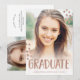 Ces amusement et invitation élégante de fête de remise des diplômes comporte le mot "diplômé" dans la typographie rose de regard d'or de faux moderne, avec la photo du diplômé répandue à travers l'avant de la carte, et des accents pointillés modernes à la mode. Le dos de la carte contient une toute votre information de partie de diplômé, une photo différente du diplômé, et des accents plus pointillés.