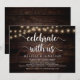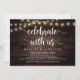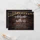 Célébrez avec nous, Carte d'annonce / invitation de mariage intime, en Bois de ferme Rustique, conception de guirlandes lumineuses. C'est parfait pour votre réception de mariage et fête de célébration après-mariage. Ajoutez vos détails dans la même police / lettrage.