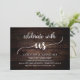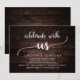 Célébrez avec nous, Invitation, Faire-part de Mariage en fuite / Carte d'invitation, avec un thème de fond en bois sombre rustique, design simple et minimaliste. C'est parfait pour votre réception de mariage et la fête d'après-mariage. Ajoutez vos détails dans la même police / lettrage.