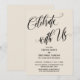 En utilisant une police de caractères moderne, élégante et tourbillonnante, j'ai créé un habillage graphique qui indique "Célébrez avec nous", pour compléter la police de caractères serif en majuscules sophistiquée utilisée pour vos détails. L'arrière-plan peut être changé en n'importe quelle couleur de votre choix. Toutes les couches ont été ajoutées séparément et laissées déverrouillées pour vous donner un contrôle important sur le design ; faites les modifications nécessaires pour créer la carte que vous imaginez. Et n'hésitez pas à me contacter si vous avez besoin d'aide pour la personnalisation ou si vous avez des demandes spéciales. // 119 //