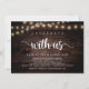 Célébrez avec nous, carte d'annonce / invitation de mariage, dans un design de bois de ferme rustique, guirlande lumineuse. C'est parfait pour votre réception de mariage et votre fête de célébration post-mariage. Ajoutez vos détails dans la même police / lettrage.