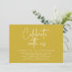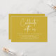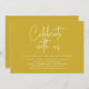 Carte d'invitation de fugue de mariage à thème Script moderne en or jaune (célébrez avec nous). Elle est parfaite pour votre réception de fugue de mariage / fête de célébration post-mariage. Ajoutez vos détails dans la même police / lettrage en or jaune.