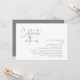 Thème de script noir moderne, carte d'invitation de mariage en fuite (célébrez avec nous). C'est parfait pour votre réception de mariage en fuite / fête de célébration après le mariage. Ajoutez vos détails dans une police / lettrage gris foncé assorti.