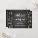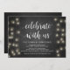 Magnifique carte d'annonce de mariage intime 'Célébrez avec nous', avec guirlande lumineuse de ferme rustique moderne et thème tableau noir. C'est parfait pour votre réception de mariage et fête de célébration après le mariage. Ajoutez vos détails dans la même police / lettrage.