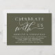 Marquez le début de votre éternité avec élégance grâce à notre carte d'invitation à la fête de la fête du mariage à thème vert olive contemporaine, dîner soirée de brunch danser, "fêtez avec nous". Parfait pour les couples qui souhaitent profiter de leur joyeux événement, cette invitation exhale le raffinement avec un soupçon de jeu, préparant le terrain pour un événement mémorable. Décoré avec un thème design contemporain intemporel, il ajoute une touche de charme raffiné à vos festivités. Conçu par TeeshaDerrick, cette invitation promet de capturer magnifiquement votre histoire d'amour.