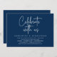 Carte d'invitation de mariage intime à thème bleu marine moderne (Célébrez avec nous). Elle est parfaite pour votre réception de mariage intime / fête de célébration après le mariage. Ajoutez vos détails avec une police / lettrage noir assorti.