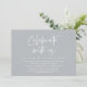 Marquez le début de votre pour toujours avec élégance en utilisant notre carte d'invitation de cérémonie d'élopement de mariage au thème contemporain, "Célébrez avec nous". Parfaite pour les couples qui prolongent leur occasion joyeuse, cette invitation dégage de la sophistication avec une touche de ludicité, préparant le terrain pour un événement mémorable. Ornée d'un thème gris glacial intemporel, elle ajoute une touche de charme raffiné à vos festivités. Créée par TeeshaDerrick, cette invitation promet de capturer magnifiquement votre histoire d'amour.