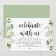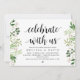 Carte d'invitation Moderne Rustique avec Eucalyptus (avec titre : Célébrez avec nous). Elle est parfaite pour votre dîner de répétition de mariage, avant votre plus beau jour. Ajoutez vos détails avec une police / lettrage noir assorti.